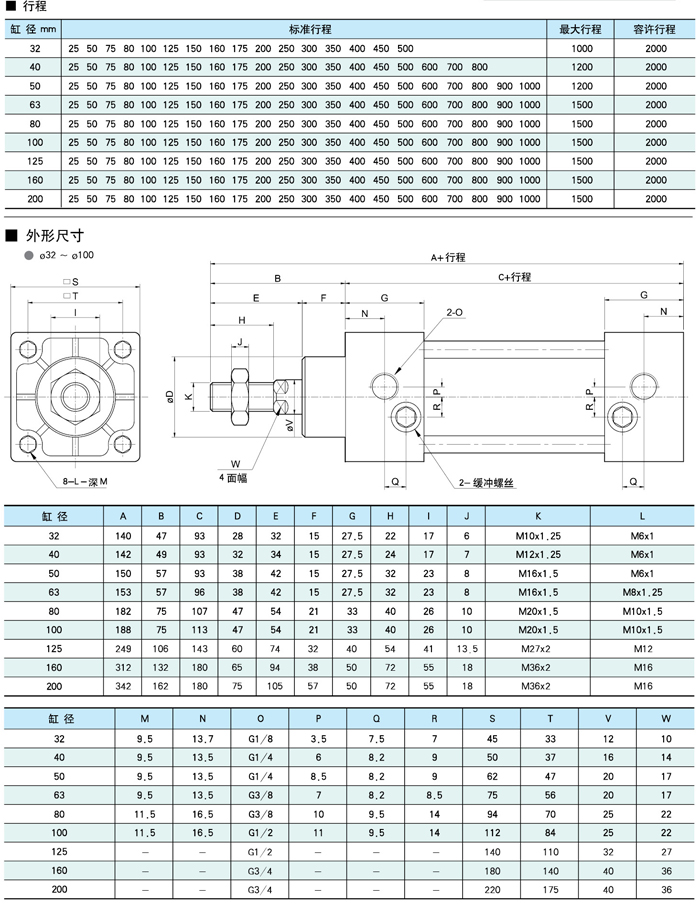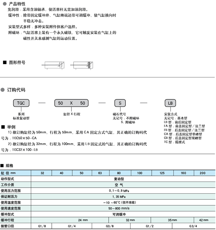 缓冲性:除带固定缓冲外,气缸终端还带可调缓冲,使气缸换向时平稳无冲击。