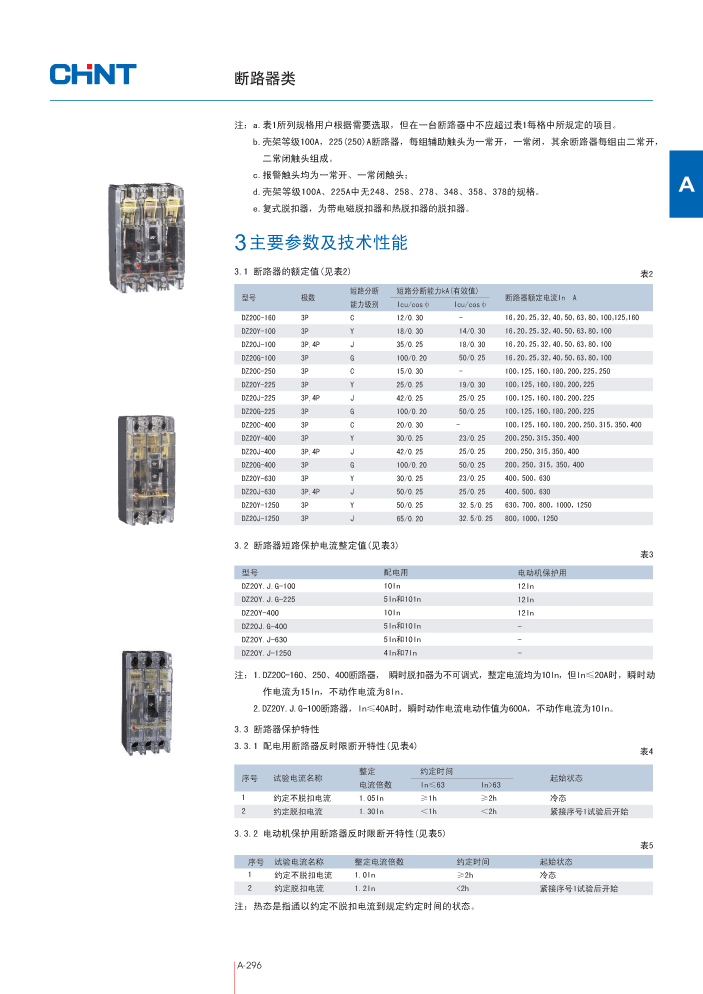 DZ20-100 电动机220V,DZ20系列塑料外壳式断路器,CHINT正泰电器